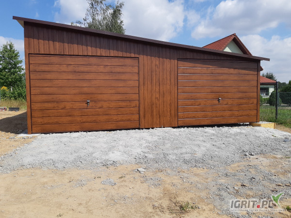 GARAŻ BLASZANY DWUSTANOWISKOWY - jednospadowy w kolorze "ZŁOTY DĄB " (ładna imitacja drewna ) o wymiarach : 7 x 6m