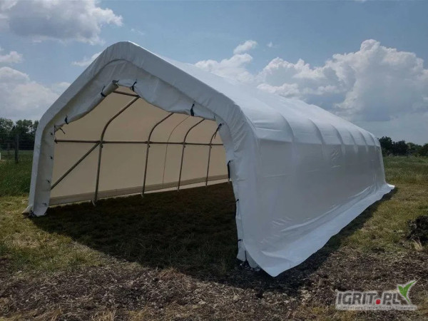Całoroczna, wszechstronnie użytkowa plandekowa hala łukowa, idealna jako garaż dla samochodów, motocykli lub jako przestrzeń magazynowa na sprzęt, magazyn rolniczy lub hala do hodowli zwierząt. Jest łatwa do złożenia i może być zakotwiona do twardej powierzchni lub bezpośrednio do gruntu. Halę można łatwo zdemontować i postawić w innym miejscu.