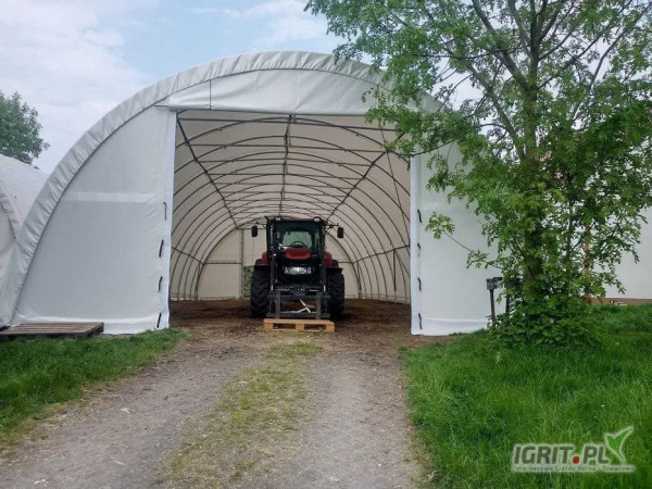 Całoroczna, wszechstronnie użytkowa plandekowa hala łukowa, idealna jako garaż dla samochodów, motocykli lub jako przestrzeń magazynowa na sprzęt, magazyn rolniczy lub hala do hodowli zwierząt. Jest łatwa do złożenia i może być zakotwiona do twardej powierzchni lub bezpośrednio do gruntu. Halę można łatwo zdemontować i postawić w innym miejscu.