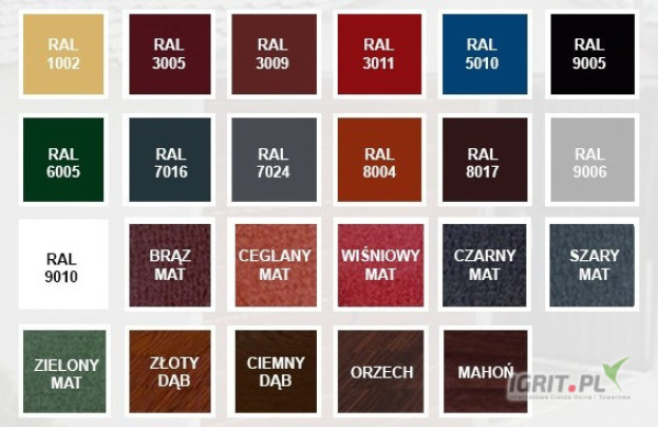 Możliwość wyboru wszystkich kolorów z Palety Kolorów RAL oraz Drewnopodobnych