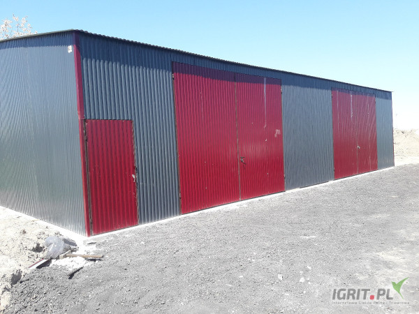 Garaż pokryty jest blachą trapezową w wybranym przez klienta kolorze - konstrukcja wykonana z profili zamkniętych.