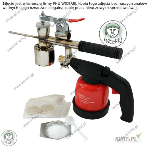 Dyfuzor, Sublimator kwasu szczawiowego (VARROA KILLER) do zwalczania warrozy u pszczół, odymiacz do leczenia pszczół. Za pomocą sublimatora odymia się pszczoły kwasem szczawiowym w postaci proszku lub kryształu. Jest to skuteczne narzędzie do zwalczania warrozy i zapobiegania warrozie u pszczół. Leczenie pszczół odbywa się za pomocą sublimacji/odparowania pod wpływem wysokiej temperatury kryształków kwasu szczawiowego. Sublimator (VARROA KILLER) posiada zasobnik na kwas szczawiowy, rurkę dyfuzyjną ze stali nierdzewnej oraz gumowy izolowany uchwyt. Palnik gazowy posiada piezo zapalnik i metalową obudowę na kartusz z gazem. Możliwymi środkami do stosowania w dyfuzorze są: kwas szczawiowy w postaci kryształu bądź proszku. Środki (kwas szczawiowy kryształ) te nie należy pod żadnym pozorem rozcieńczać. Do sublimatora (VARROA KILLER) dołączona jest instrukcja obsługi. Zestaw zawiera: 1. Sublimator (VARROA KILLER) 2. Zapasowe uszczelki zasobnika 2szt 3. Plastikowa miarka 4. Instrukcja obsługi Pokazany na zdjęciach kwas szczawiowy w postaci kryształów nie jest częścią zestawu. Długość rurki sublimacyjnej – 14,5cm Długość całkowita – około 40cm Istnieje możliwość wysyłki na wskazany adres dowolnej ilości Zapraszam do naszego sklepu internetowego wicerej.pl W razie dodatkowych pytań proszę o kontakt Zapraszamy do obejrzenia pozostałej oferty w naszym sklepie pszczelarskim wicerej.pl Nasza oferta obejmuje: miodarki, topiarki do wosku, stoły do odsklepiania ramek, odstojniki do miodu, wanienki do odsklepiania, bluzy pszczelarskie, kombinezony, rękawice, kapelusze pszczelarskie, dłuta, podkurzacze, dyfuzory, podkarmiaczki, zasuwki, poławiacze pyłku, widelce do odsklepiania, sita do miodu, kraty odgrodowe i wiele innych. Wysyłka sprzętu na terenie całego kraju. Na każdy zakupiony towar udzielamy gwarancji. Wystawiamy faktury VAT. Nasz sprzęt można zamawiać na dotacje UE ARiMR. Zdjęcia zostały wykonane przez firmę FHU WICEREJ, stanowią jej własność, opatrzone są znakami wodnymi oraz logiem firmy. Zdjęcia przedstawiają realny wygląd produktu. Produkty innych sprzedawców z naszymi zdjęciami, na których brak jest naszych znaków wodnych i logo firmy wicerej, oznaczają nielegalną kopię naszych zdjęć przez innych sprzedawców.