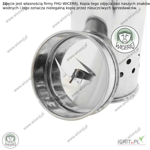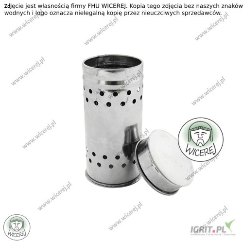 Pojemnik pozwala na właściwe spalanie się knotów siarkowych do odkażania uli, ramek, pomieszczeń.