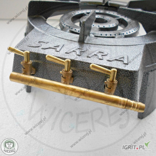 Palnik gazowy wykonany jest z żeliwa malowanego proszkowo. Taboret gazowy wyposażony jest w trzy niezależne od siebie zawory, które umożliwiają płynną regulację mocy płomienia. Regulacja mocy płomienia odbywa się za pomocą 3 pokręteł (zaworów). Taboret dostosowany jest do gazu propan butan.
