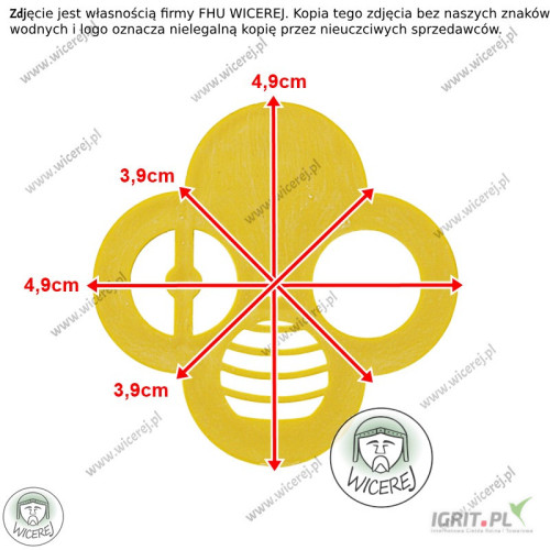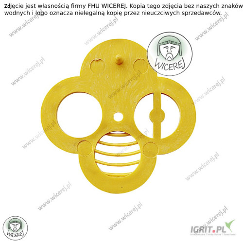 Zasuwka do ula koniczyna, zamknięcie wylotka okrągłego do uli, ulików weselnych, transportówek, rojnic, korpusów i daszków. Zasuwka wykonana jest z tworzywa sztucznego - plastiku.