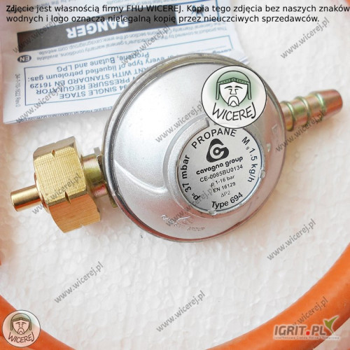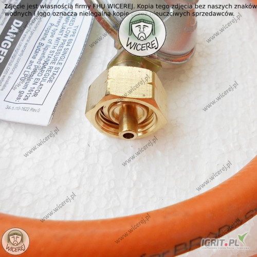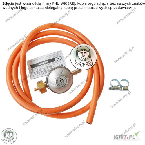 Reduktor jest sprzedawany w zestawie z wężem 1,5mb i 2 opaskami zaciskowymi.