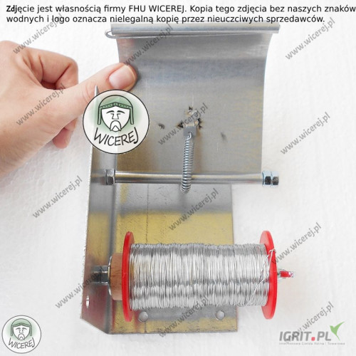 Posiadamy w sprzedaży uchwyt do trzymania drutu, podajnik drutu na ramki pszczele, wykonany ze stali ocynkowanej. Dostosowany jest do standardowych rolek z drutem.