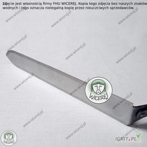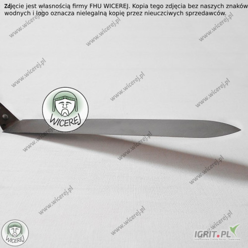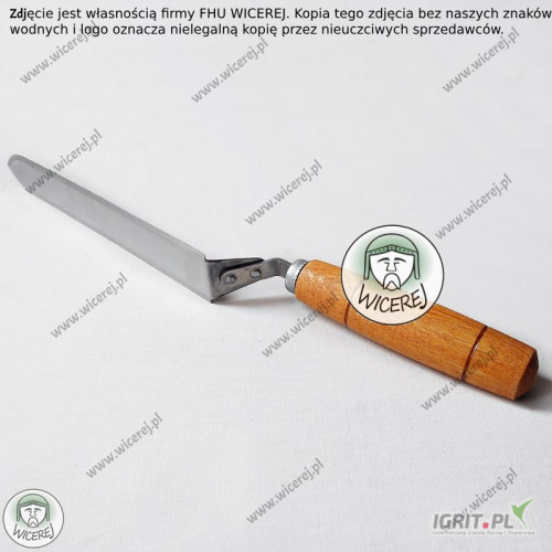 Posiadamy w sprzedaży Nóż Pasieczny do odsklepiania ramek z bardzo wąskim ostrzem, wykonanym ze stali nierdzewnej, hartowanej (ostrze w kształcie trapezu jest bardzo wąskie, ale równocześnie odporne i sprężyste). Dodatkowo posiada odpowiednio wyprofilowaną drewnianą rączkę - odsadzoną pod odpowiednim kątem, aby praca nożem była wygodna i bezproblemowa (odsadzony uchwyt chroni przed ubrudzeniem rąk podczas pracy z ramką).