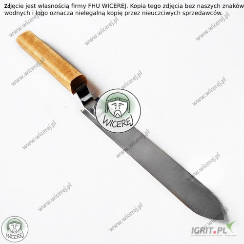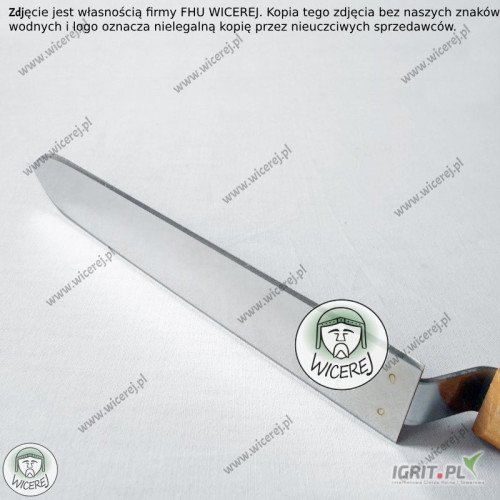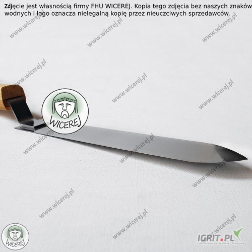 Posiadamy w sprzedaży Nóż Pasieczny do odsklepiania ramek z wąskim ostrzem, wykonanym ze stali nierdzewnej, hartowanej (ostrze jest wąskie, ale równocześnie odporne i sprężyste). Dodatkowo posiada odpowiednio wyprofilowaną drewnianą rączkę. Jest odsadzona pod odpowiednim kątem, aby praca nożem była wygodna i bezproblemowa (odsadzenie chroni przed ubrudzeniem rąk podczas pracy z ramką).