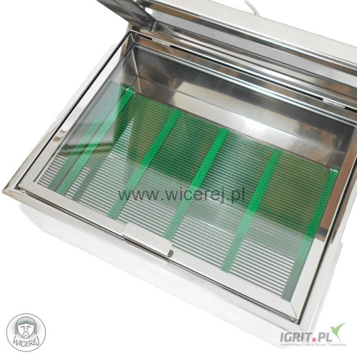 • szyby podwójnej próżniowej, okutej w korpus ze stali nierdzewnej (podwójna szyba przyspiesza nagrzewanie się urządzenia i szybsze topienie się wosku)