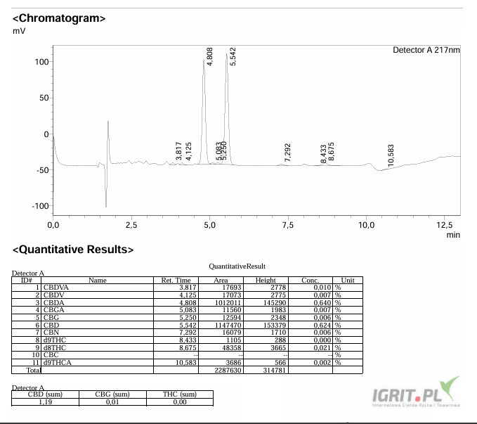 - CBD + CBDA ≈ 1,2%