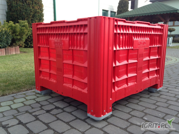 Skrzyniopalety plastikowe Palbox ażurowe model 110 FA do przechowywnia jabłek oraz innych owoców i warzyw w chłodniach oraz w warunkach głębokiego zamrożenia.