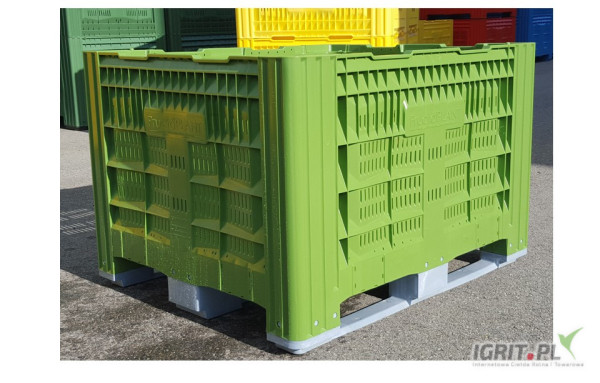 OpisSkrzyniopalety plastikowe Palbox ażurowe model 110 FA do przechowywnia jabłek oraz innych owoców i warzyw w chłodniach oraz w warunkach głębokiego zamrożenia.