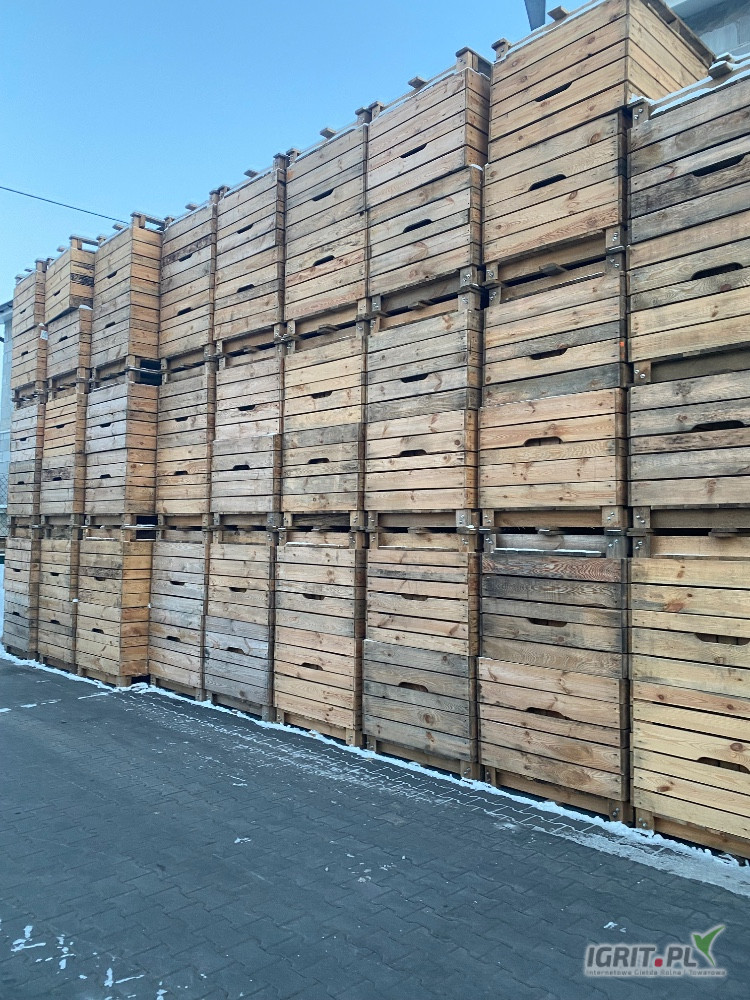 Sprzedam 300 sztuk skrzyniopalet na jabłka o wymiarach 120/100/80 na płozach. Skrzynie produkowane na zamówienie z dobrego drewna ,zawsze pod dachem jak nowe a mają 7 lat.