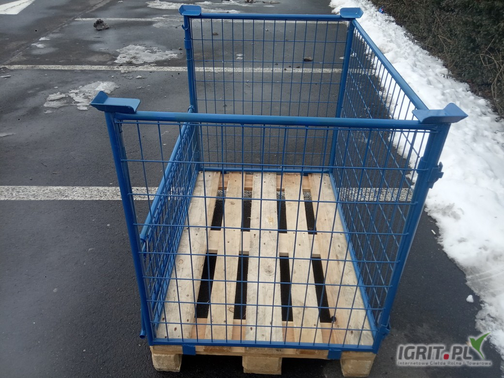 - 1200 x 800 x 890 mm (dł/szer/wys); dopasowana do palet drewnianych o tych samych wymiarach podstawy;