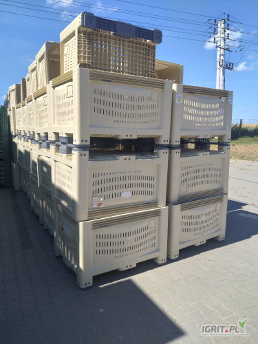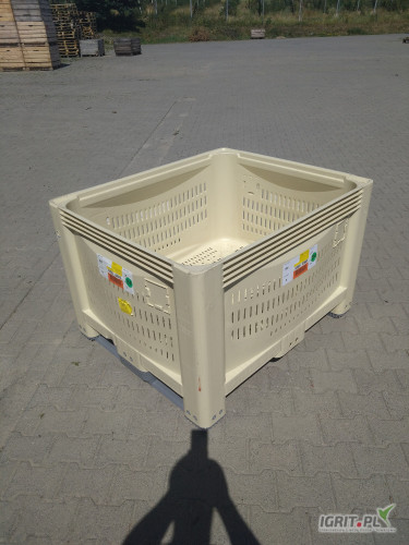 OpisSprzedam użyte raz skrzyniopalety plastiokowe w rozmiarze 120x100x75 cm takie jak na zdjęciach. Cena 300 zł netto/369 zł brutto. Tylko faktury. tel. 506+124+436