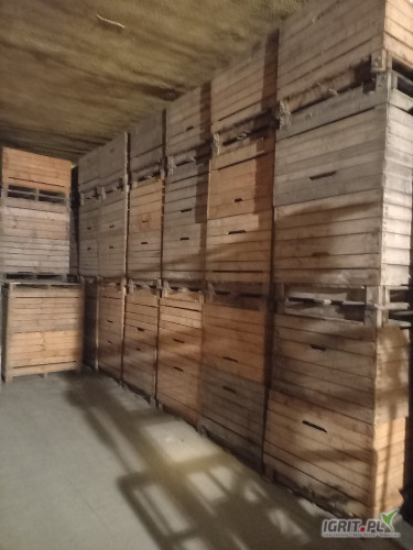 Sprzedam używane skrzyniopalety drewniane na jabłka (na płozach), skrzyniopalety suche magazynowane.Ostatnie 100 szt.