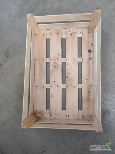 OpisSprzedam skrzynki/łuszczki drewniane o wymiarach 600x400x170mm do pakowania warzyw (kalafior, por, kapusta)
