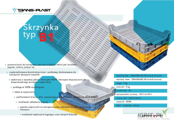 Witam, producent skrzynek sprzeda skrzynki typu M5 pod owoce miękkie (malinę, porzeczkę, borówkę)