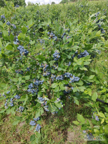 Owoce borówki amerykańskiej z małej, rodzinnej plantacji. Stargard, Dobrzany