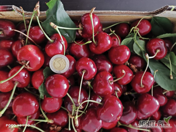 Sprzedam czereśnie spod osłon. Kaliber 26,28,30. Cena 23zł. Zbieramy 2-3 tony dziennie. Zbiór od piątku (20.06.2025)