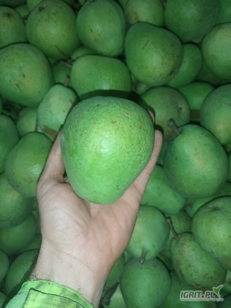 Sprzedam gruszkę lukasówkę 19 skrzyń z KA . Gruszka czysta, bez miodówki, jędrna, zielona. Kaliber około 80 % powyżej 7 .