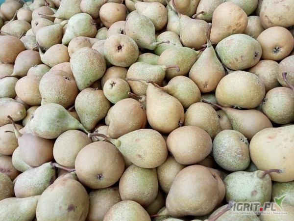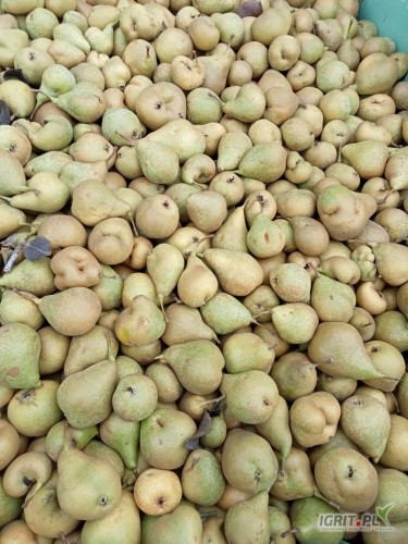 OpisSprzedam gruszkę przemysłową odmiany Ksenia. Gruszka w plastikowej skrzyniopalecie, rwana z drzewa do skrzyni - bez zmiemi. Część towaru ma zmiany pomrozowe. Ok 70% towaru - wielkość od 50 do 60. Pozostałe 30% towaru - poniżej 50 i powyżej 60. Gruszka twarda. Dostępna ilość ok. 70 ton. Zapraszam do kontaktu.