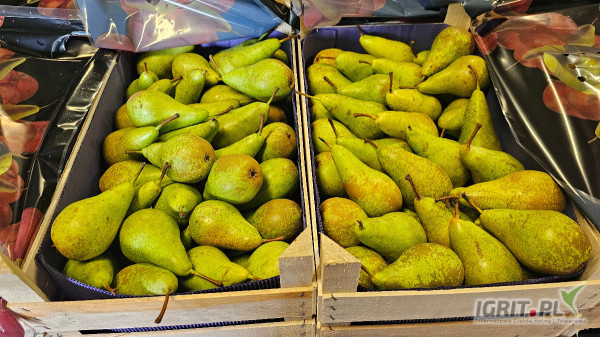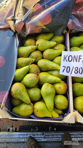 OpisSprzedam Konferencję w łuszcze 12kg, kalibry 70/80, 60/70, 60+ oraz 50/60 a także Lukasówkę 65+ oraz Lukasówkę za wagę w skrzyni. Towar do obejrznia w Belsku Dużym