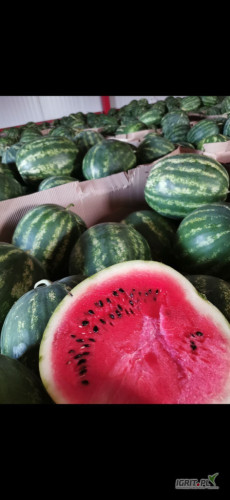 Arbuz, bezpośrednio od producenta w Macedonii, kaliber 4-10 kg. Pakowanie wg zamowienia. Słodki, soczysty, czerwony. Dostępne ilości tirowe lub paletowe.