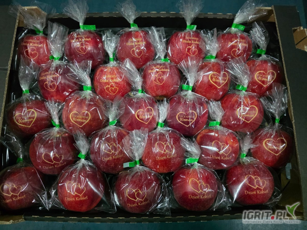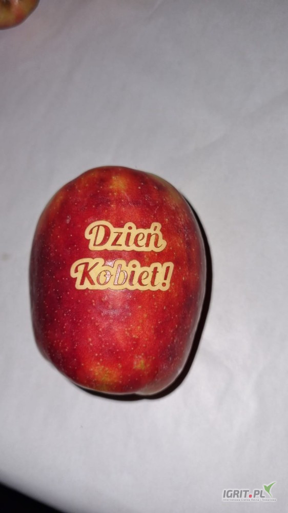 Sprzedam jabłka grawerowane z motywem z okazji Dnia Kobiet.