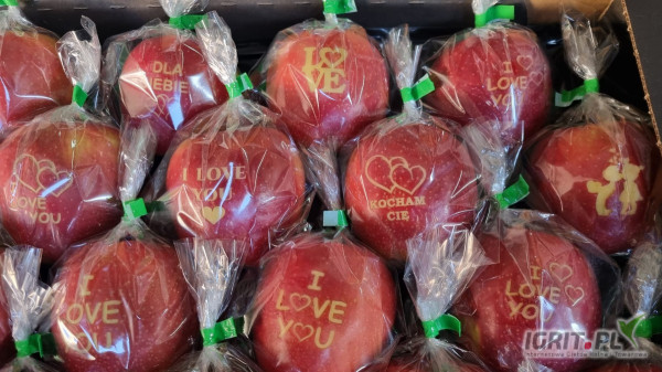 Sprzedam jabłka grawerowane z walentynkowym motywem. Do wyboru różne wzory, napisy w różnych językach. Możliwość zaprojektowania wzoru pod indywidualne zamówienie.