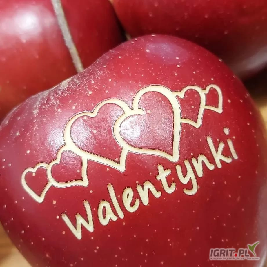 Sprzedam jabłka grawerowane z walentynkowym motywem. Do wyboru różne wzory, napisy w różnych językach. Możliwość zaprojektowania wzoru pod indywidualne zamówienie.