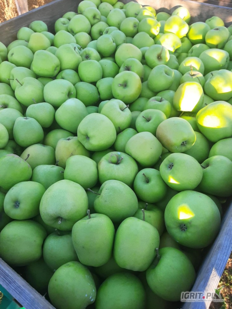 Sprzedam jabłko: Golden 12 skrzyń, rwany 65+ (gruby) oraz Mutsu 16 skrzyń, rwane 70+. Towar z delikatnymi śladami gradu. Mogielnica