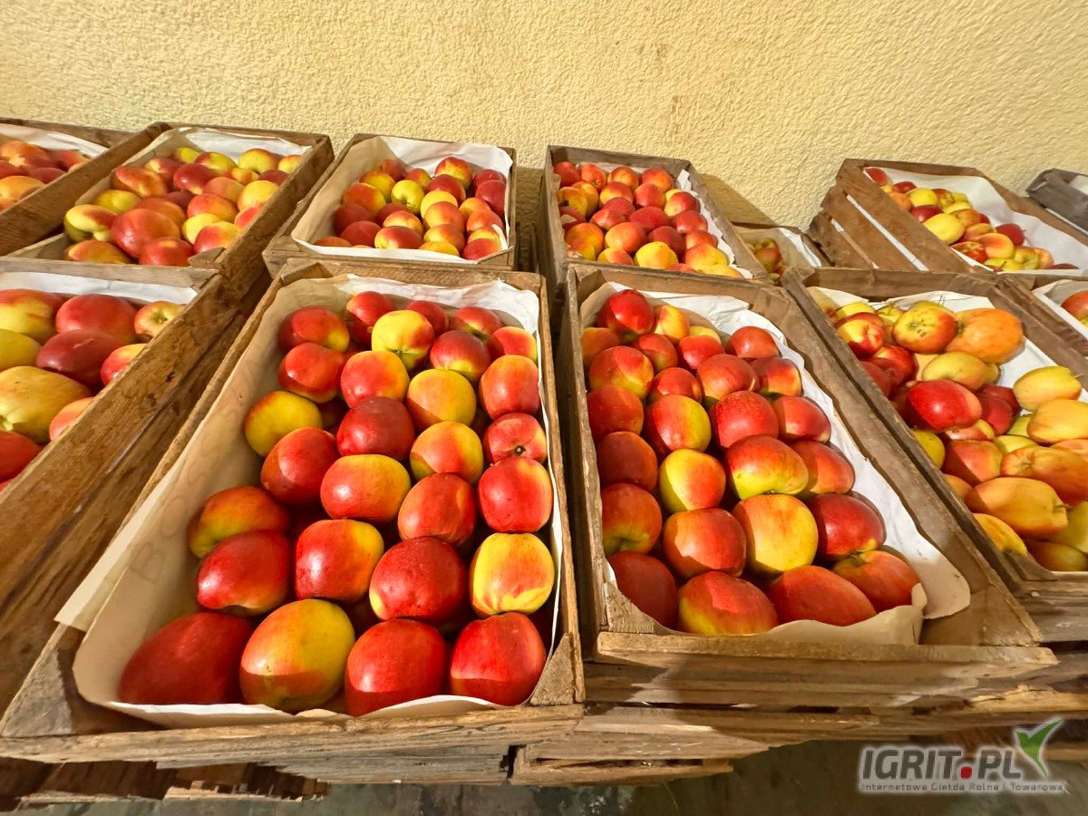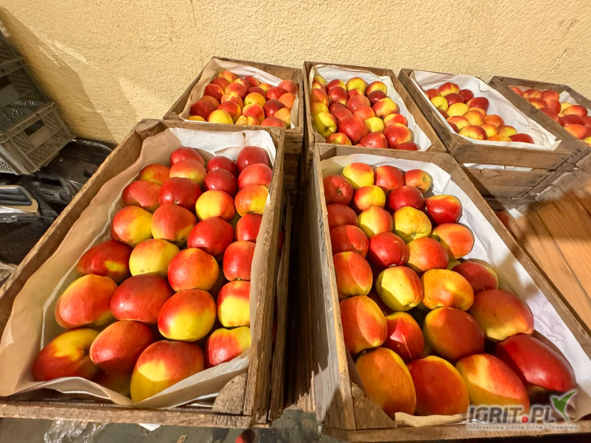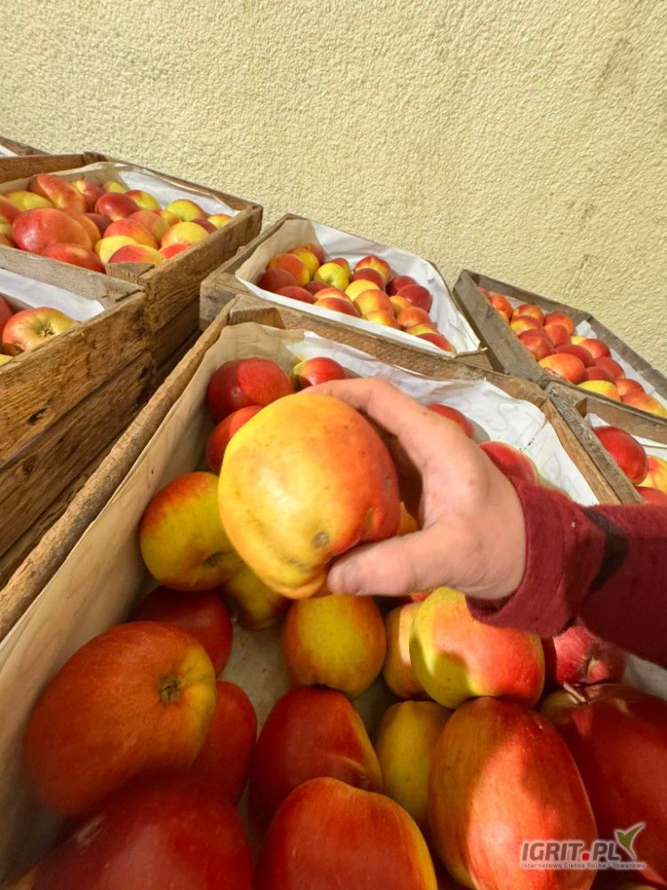 Jabłko ładnie wybarwione, w rzeczywistości jest bardziej zielonkawy. Lekkie ślady po mrozowe pokazane na zdjęciach