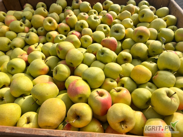 Sprzedam Golden po lekkim gradzie. Jabłko w chłodni, zrywane, nie poobijane. 200 skrzyń.