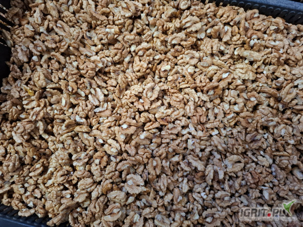 Orzechy sa przewiane, odebrane ciemne i skorupy, suche. Pakowane w pudelka.