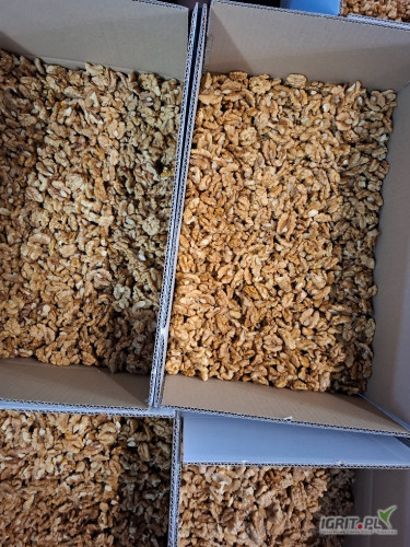 OpisSprzedam tonowe ilosci orzechow wloskich luskanych. W sprzedazy orzech 1 klasy, jasny, gruby oraz mix.