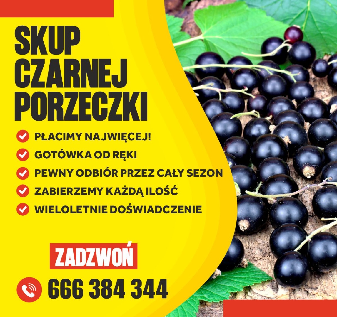 Grupa SAJEWSKI zakupi każdą ilość Porzeczki Czarnej i Czerwonej Zapewniamy transport z opakowaniem "na pole", gotówka przy załadunku lub szybki prz