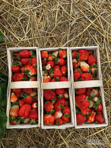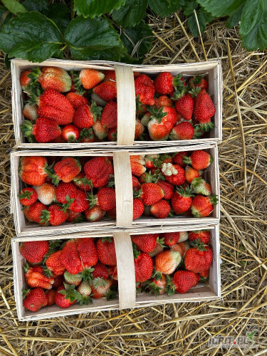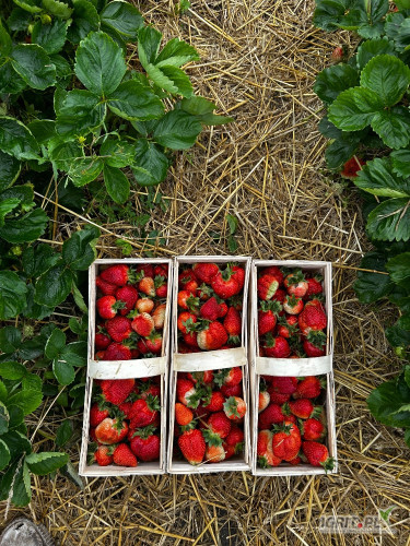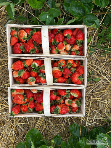 Sprzedam piękną grubą truskawkę odmiany Azja. Truskawka w nowym koszyku pierwsze rwanie
