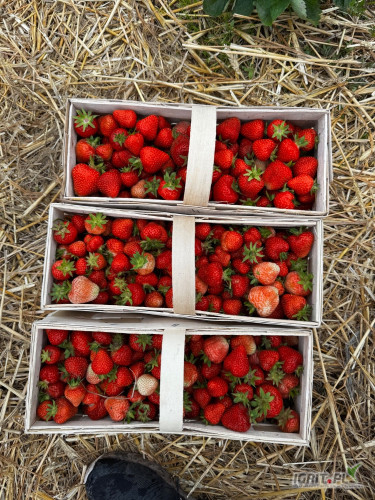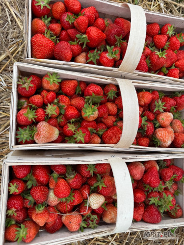 Sprzedam piękną świeżo rwaną truskawkę w nowym koszyku odmiana verdi 1000 sztuk.