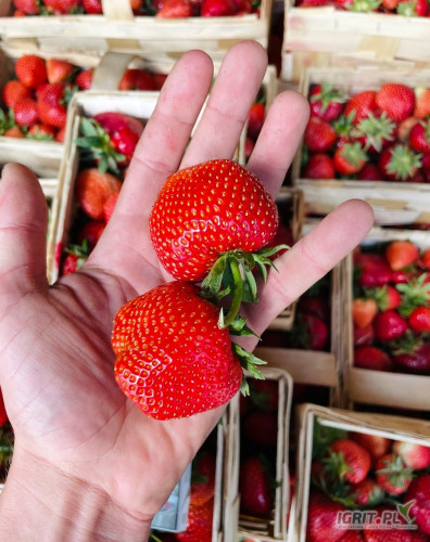 Sprzedam truskawkę rumbę, dzisiejszy zbiór do 12 będzie około 1000 koszy, towar taki jak na zdjęciu, suchy, sztywny 18zl kosz.