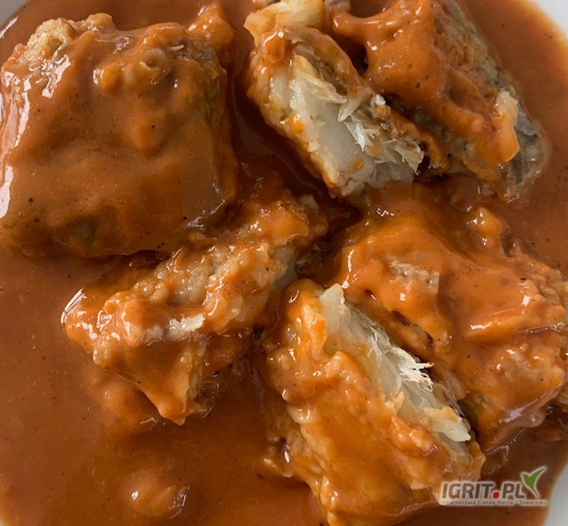 - W pikantnym sosie pomidorowym lub musztardowym;