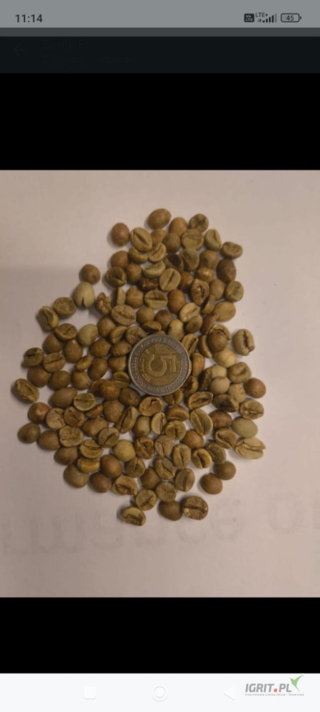 W ofercie sprzedaży jest kawa surowa Robusta screen 18 , kraj pochodzenia Uganda , pakowana w big bagach. Dostępne 18600 kg . Cena 21 netto.