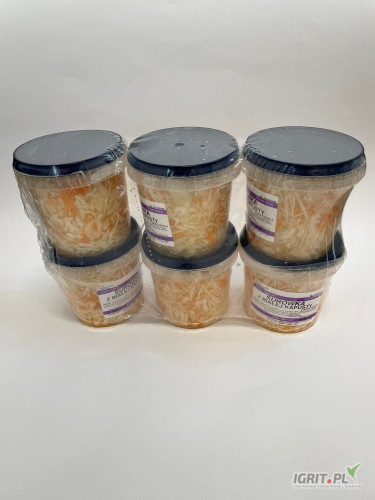 NOWOŚĆ Świeża surówka z białej kapusty z marchewką, w zalewie nadającej przepyszny smak, pakowana po 6szt.