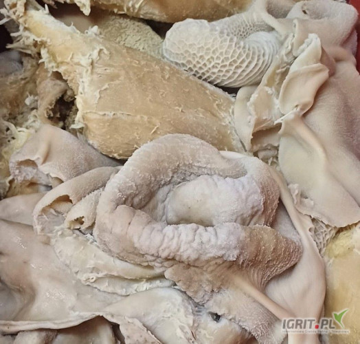 OpisPrzedżołądki wołowe, oczyszczone, parzone i mrożone. Pakowane w karton wyłożony folia.