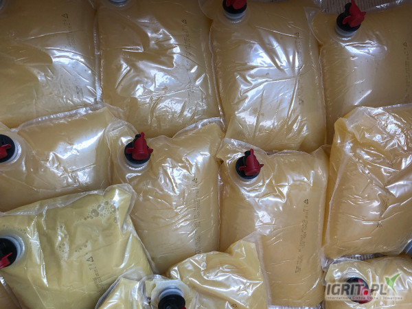 OpisSOK Z PIGWOWCA WOREK 3L Sok NFC (nie z koncentratu) naturalnie mętny otrzymany ze świeżych owoców pigwowca japońskiego z plantacji z własnego gospodarstwa tłoczony w październiku 2022. Cena 35 zł netto za 3 L + koszty wysyłki lub transportu. Dostępne ilości do uzgodnienia Tel. 60********21 Data produkcji: październik 2022r. Trwałość: 18 miesięcy Opakowanie: worki Bag in Box 3 L Badania fizyczno-chemiczne: Kolor: żółty, naturalnie mętny Brix: 8,6% Cukry ogółem: 2,5-2,7 % Kwas askorbinowy (wit. C): 551 mg/kg Kwasowość przeliczona na kwas jabłkowy: 45,1 g/lW sprzedaży również opakowania: butelka 0,3 L oraz beczka 200 L (200 KG)
