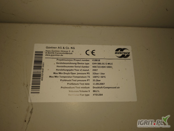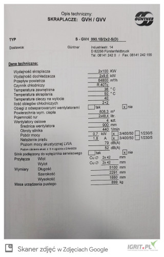 Sprzedam fabrycznie nowe, choć "parę lat" magazynowane, nigdy nie montowane!!, magazynowane w hali wys. składowania, dwie chłodnice wentylatorowe marki GUNTER, typ: S-GVH 090.1B/2x2-S(D)