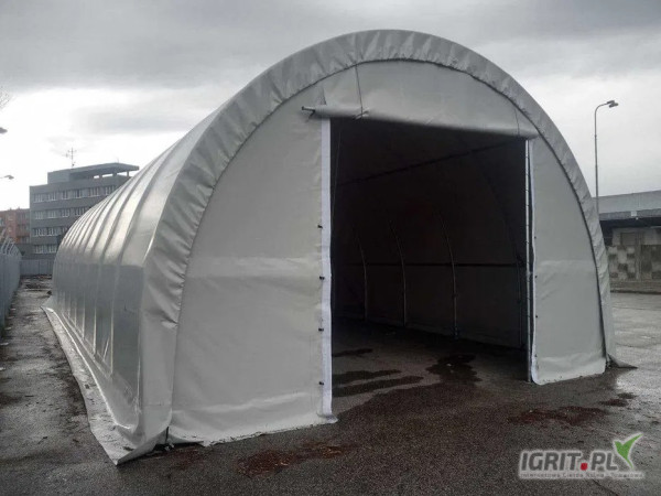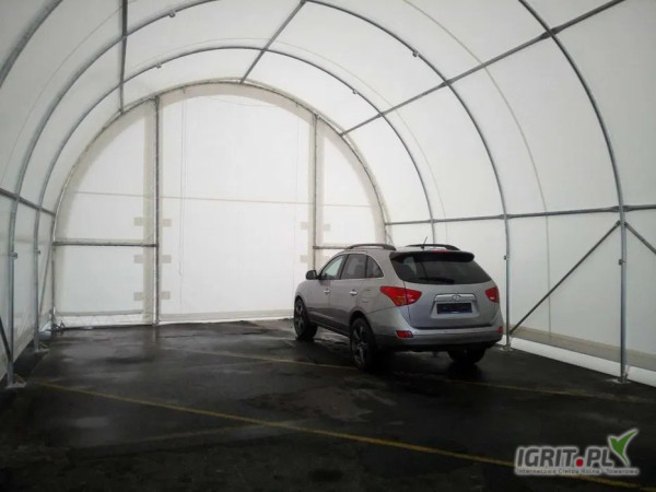 Całoroczna, wszechstronnie użytkowa plandekowa hala łukowa, idealna jako garaż dla samochodów, motocykli lub jako przestrzeń magazynowa na sprzęt, magazyn rolniczy lub hala do hodowli zwierząt. Jest łatwa do złożenia i może być zakotwiona do twardej powierzchni lub bezpośrednio do gruntu. Halę można łatwo zdemontować i postawić w innym miejscu.