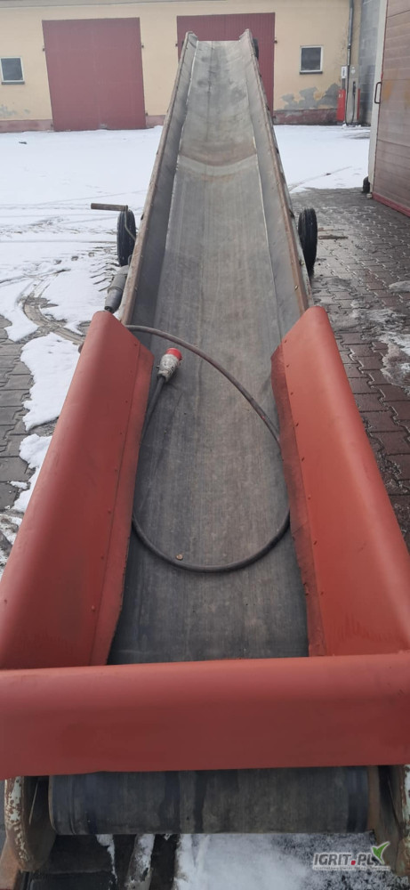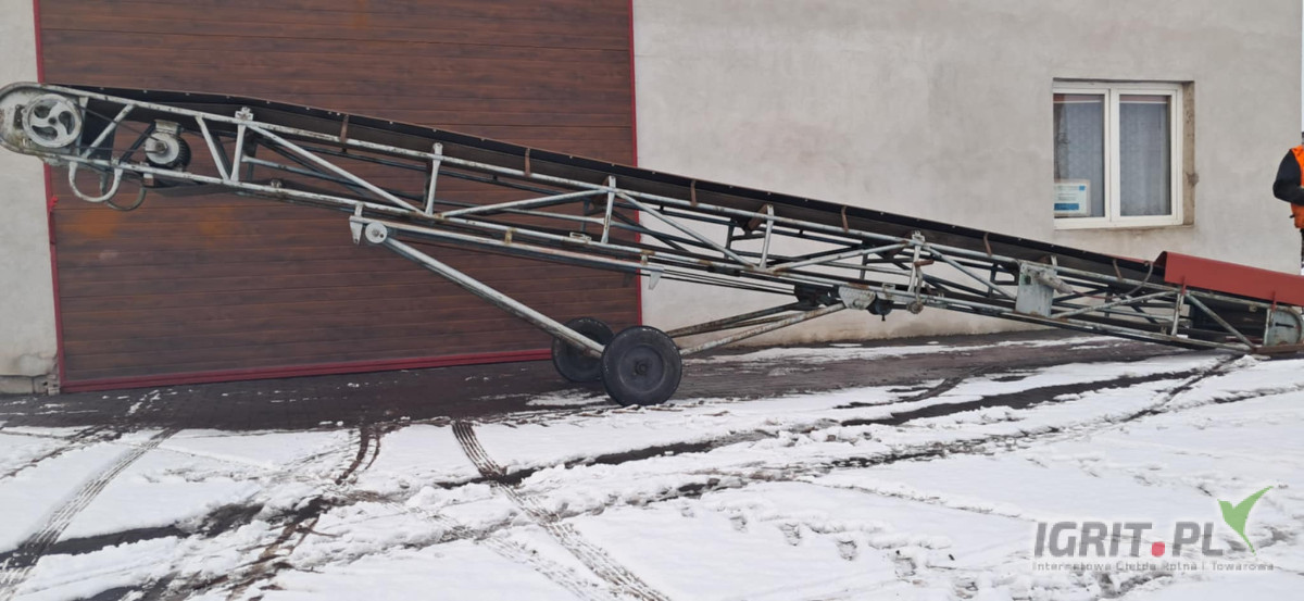 Sprzedam taśmociąg fabryczny do łuskwin bobu o długości 8 metrów , szerokość robocza 50 cm. Regulowana wysokość , taśma nowa polska o grubości 8 milimetrów . Stan bardzo dobry jak nowy.