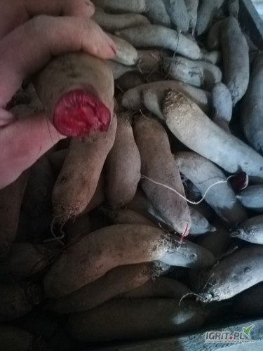 Sprzedam buraki okrągłe oraz długie cena za okrągłe 1 zł długie 1,5 zl. Worek 10 kilo na brudno. Ilości tonowe.